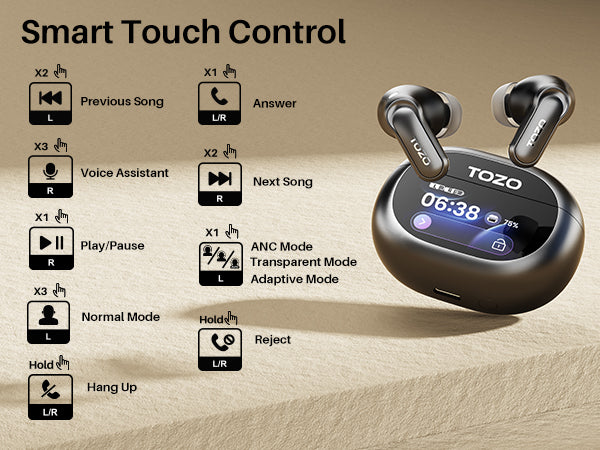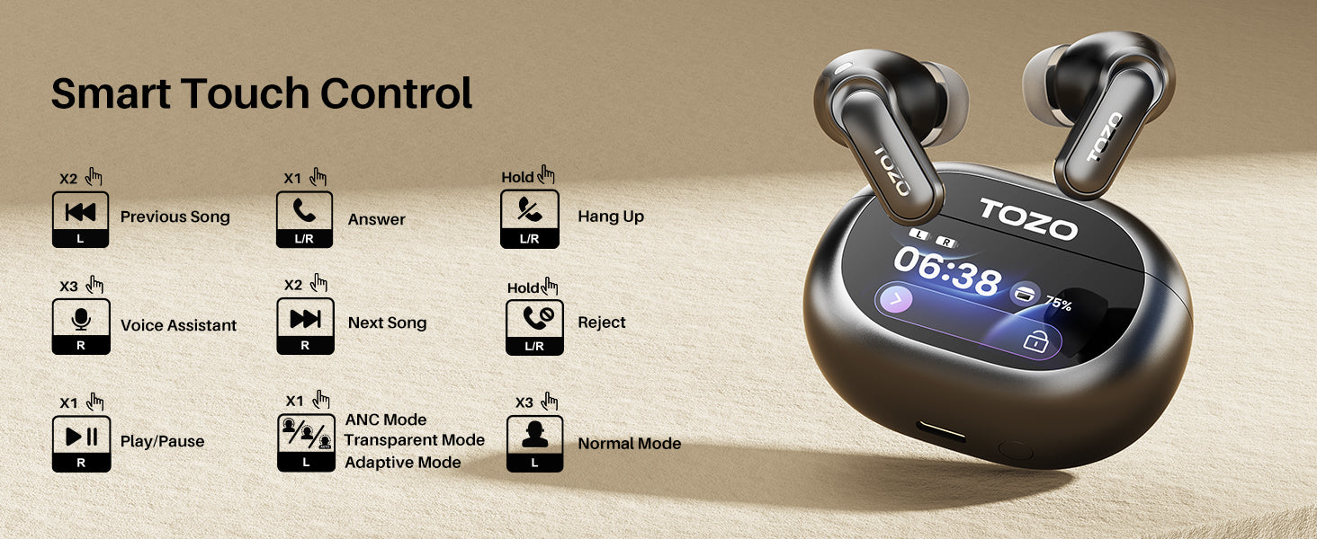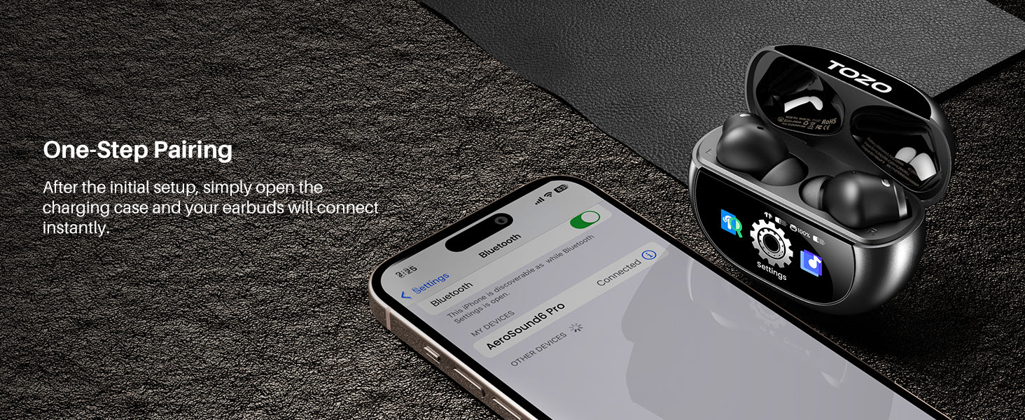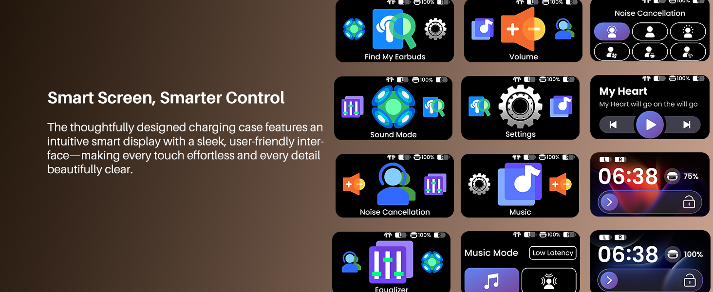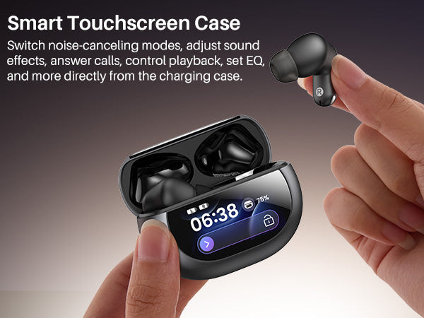 The AeroSound6 Pro features a Smart Touchscreen Case. This full-color display allows you to directly control various functions from the case, including switching noise-canceling modes, adjusting EQ, answering calls, and controlling playback, offering unprecedented convenience.