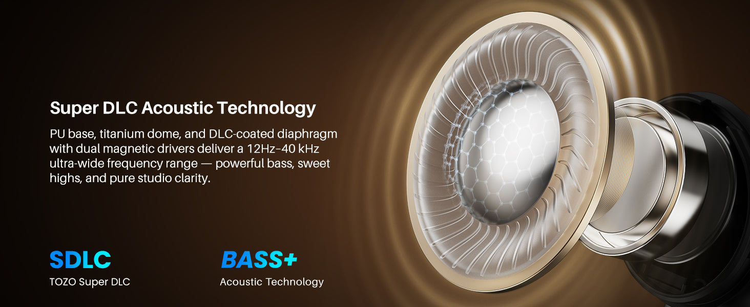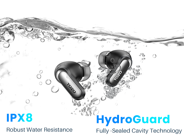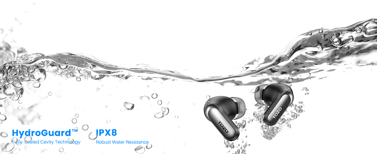 A fully sealed acoustic chamber with nano waterproof coating protects internal components from water damage.