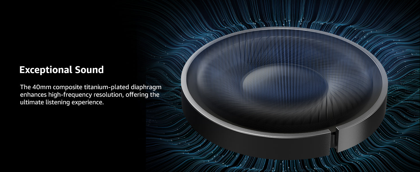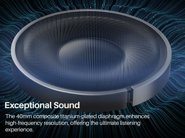 [Exceptional Sound] The 40mm composite titanium-plated diaphragm enhances high-frequency resolution, offering the ultimate listening experience.