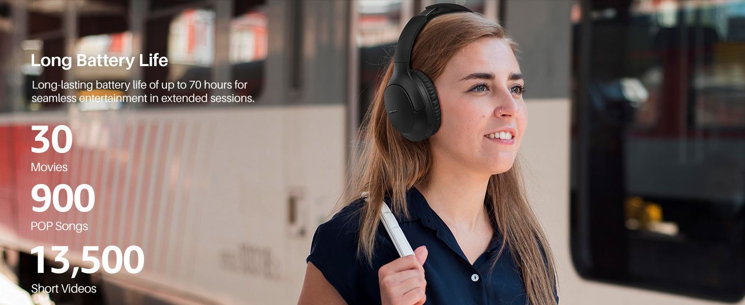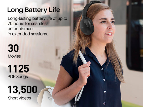 [Long Battery Life]Long-lasting battery life of up to 70 hours for seamless entertainment in extended sessions.