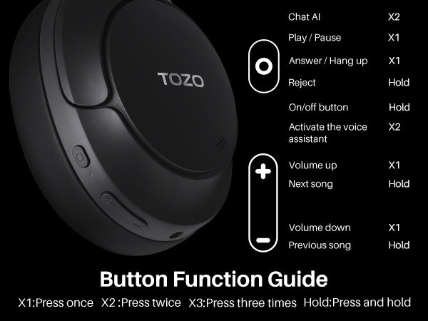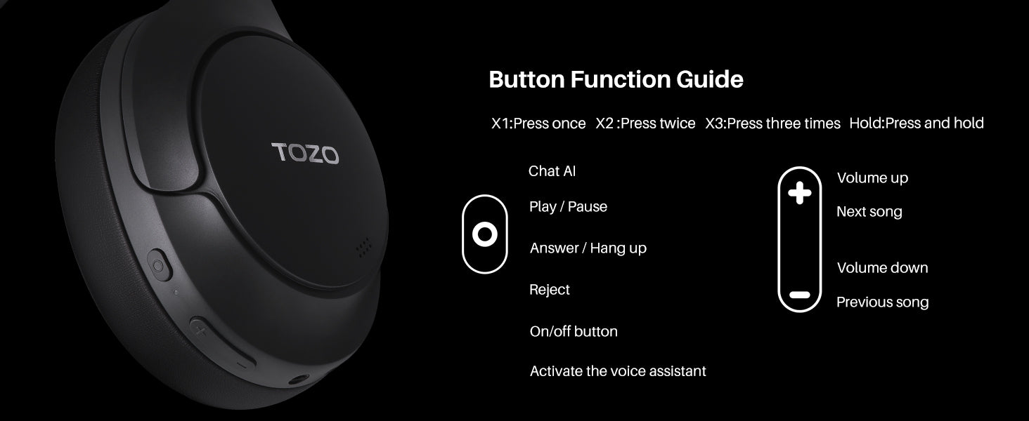 TOZO H20 Wireless Over Ear Bluetooth Headphones