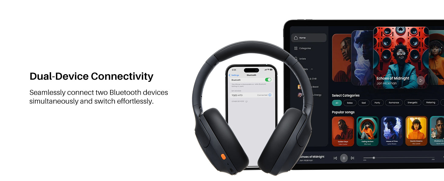 Enjoy studio-level sound with Hi-Res Audio Wireless certification ,TOZO's exclusive OrigX Acoustics tuning and LDAC support, delivering high-definition playback up to 24-bit/96kHz.