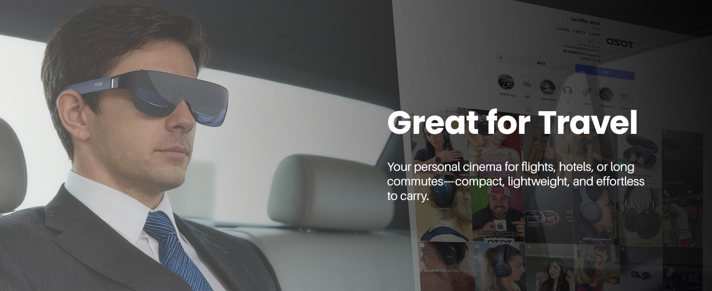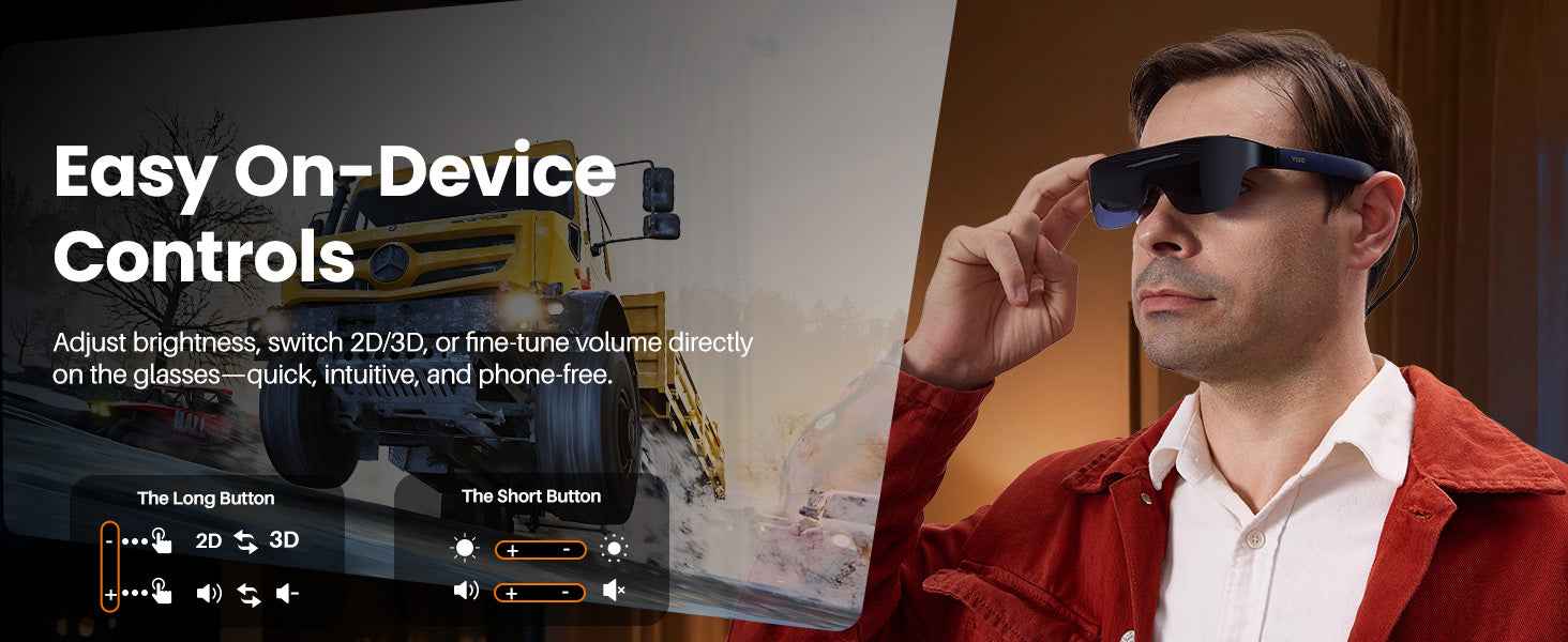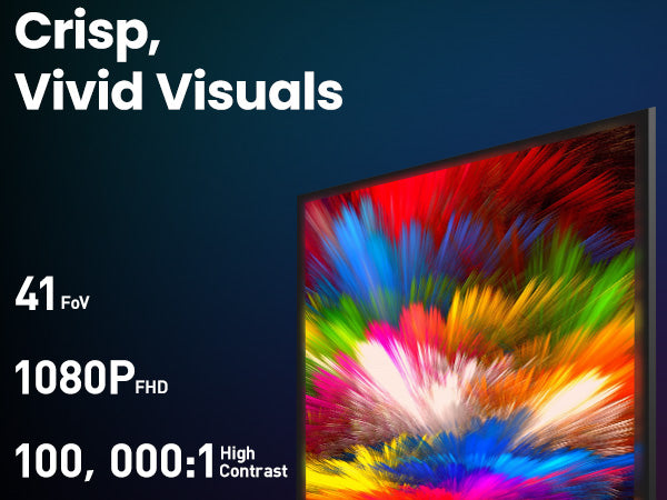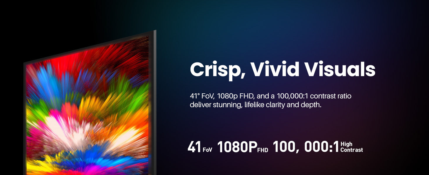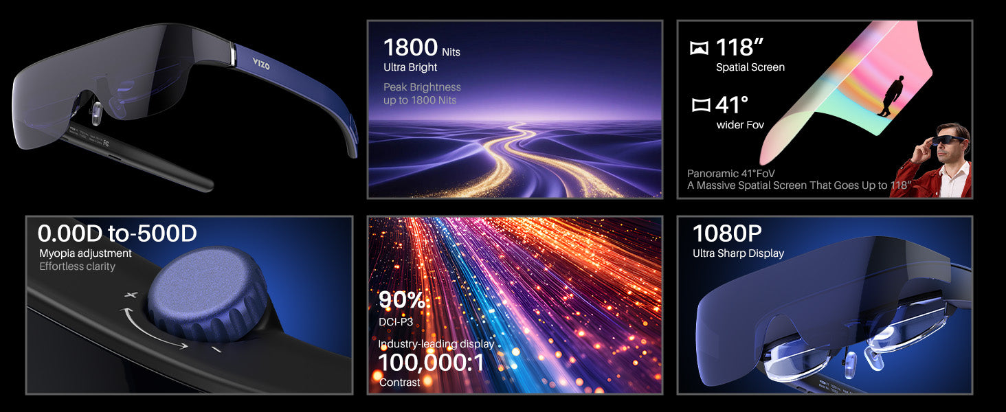 The VIZO V1 simulates a massive 118-inch virtual mega screen right in front of your eyes. This, combined with 1080p FHD resolution and a 100,000:1 contrast ratio, provides a personal theater experience with crisp, vivid, and lifelike clarity.